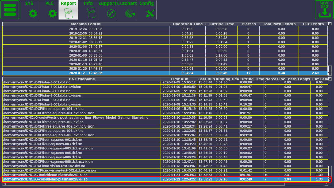 The Report tab is now showing correctly the number of pierce times, the tool path length and the total cut length: