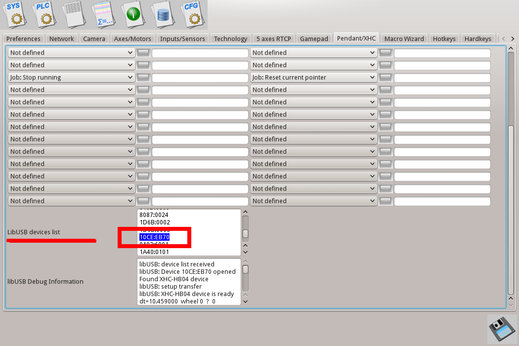 5. Restart myCNC software. Open settings dialog "Pendant/XHC", check if device "10CE:EB70" is
