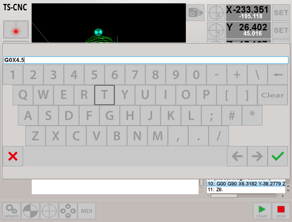 | Pendant: Mul (*) | Cycle switch "Pendant Control" Step select between "0.001", "0.01", "0.1", "1". If Max value ("1") reached, next will be Min value ("0.001") |