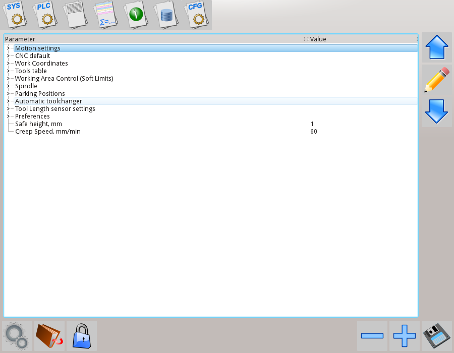 - "Save" button. Press this button to save hardkeys configuration to disk. Please notice that changes will take effect after myCNC software restart.